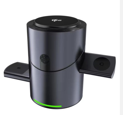 Charge all your Apple devices in one place with this sleek 3-in-1 rotating wireless charging station, designed for speed, stability, and everyday convenience. With Qi2 certification and 15W fast wireless charging, it delivers safe, efficient power for your iPhone while simultaneously charging your Apple Watch and AirPods.
